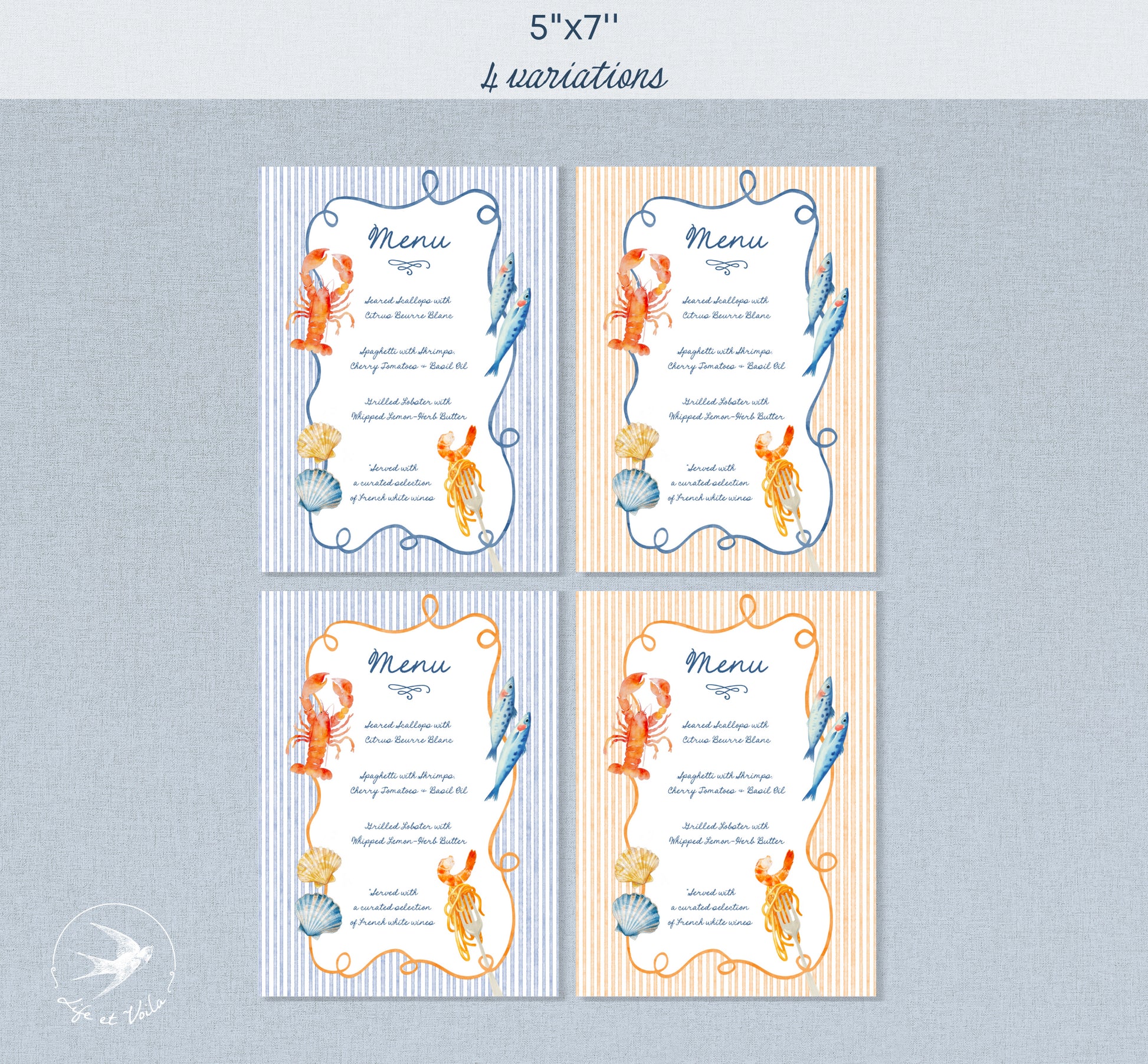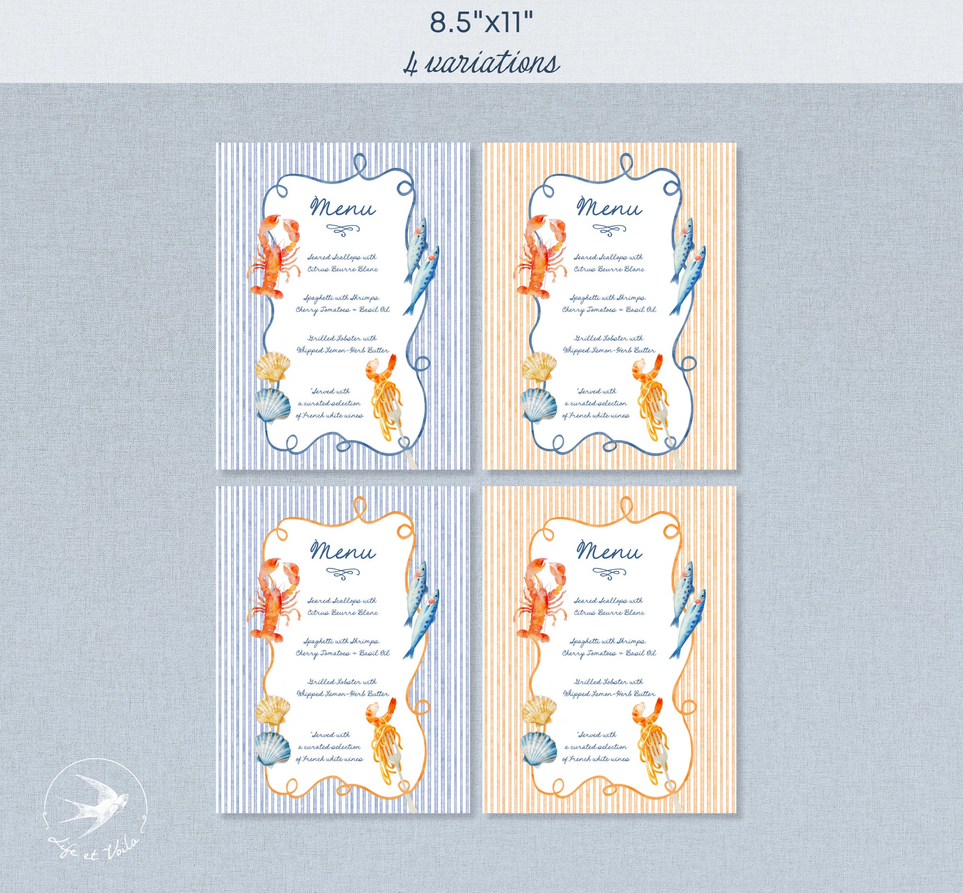 Amalfi Menu de Fruits de Mer Fantaisiste | Modèle Canva modifiable