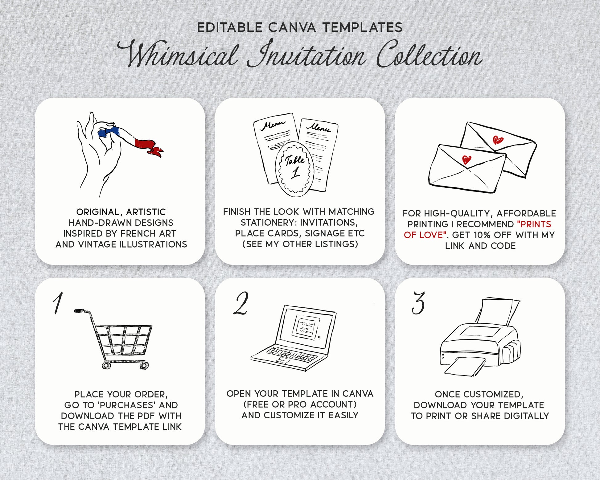 Utilisez mon lien spécial pour la livraison gratuite et les enveloppes gratuites : https://printsoflove.com/ref/alacartedesign