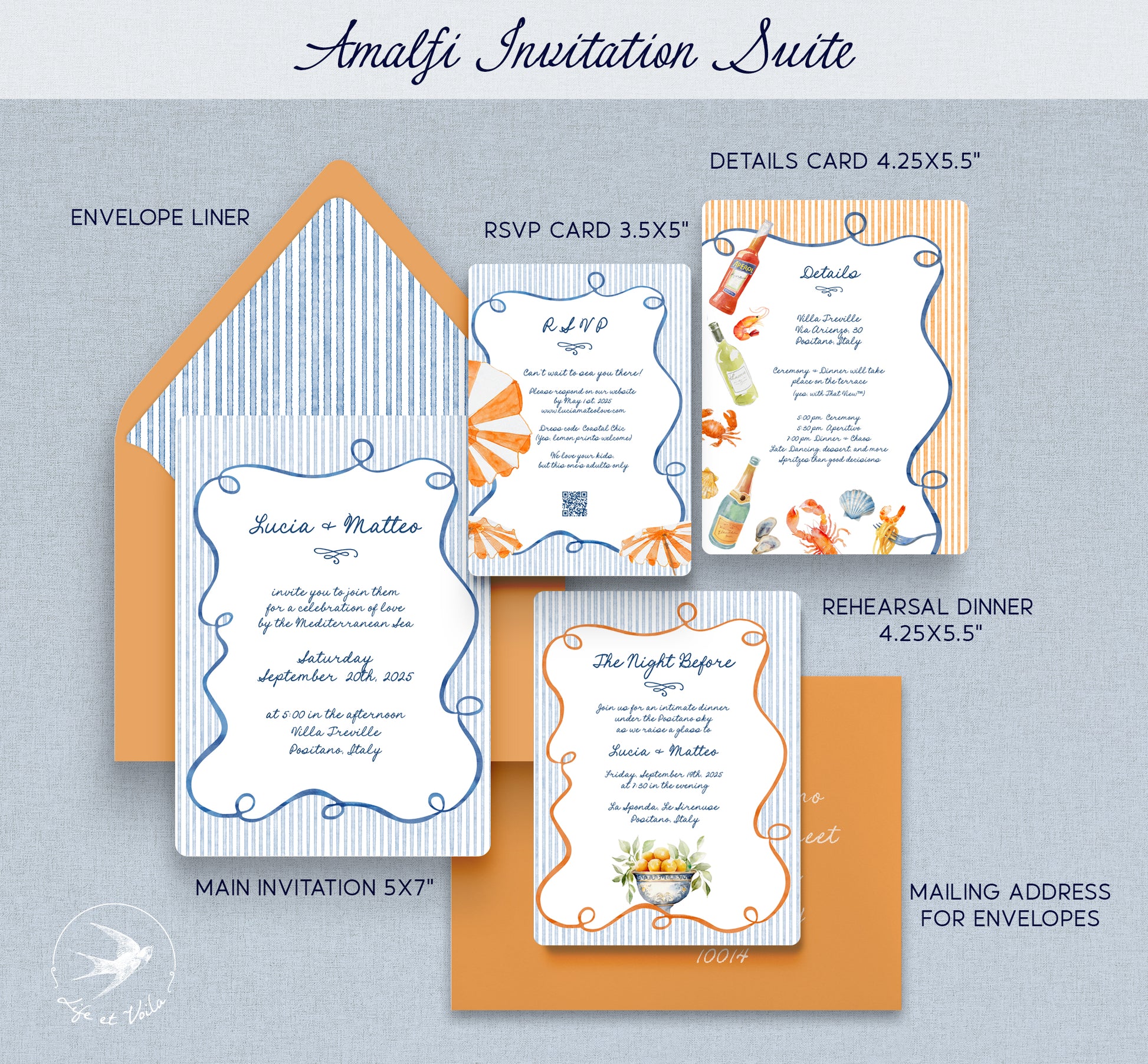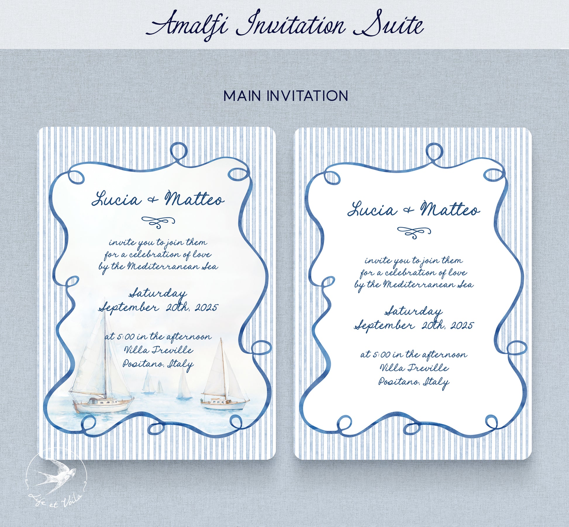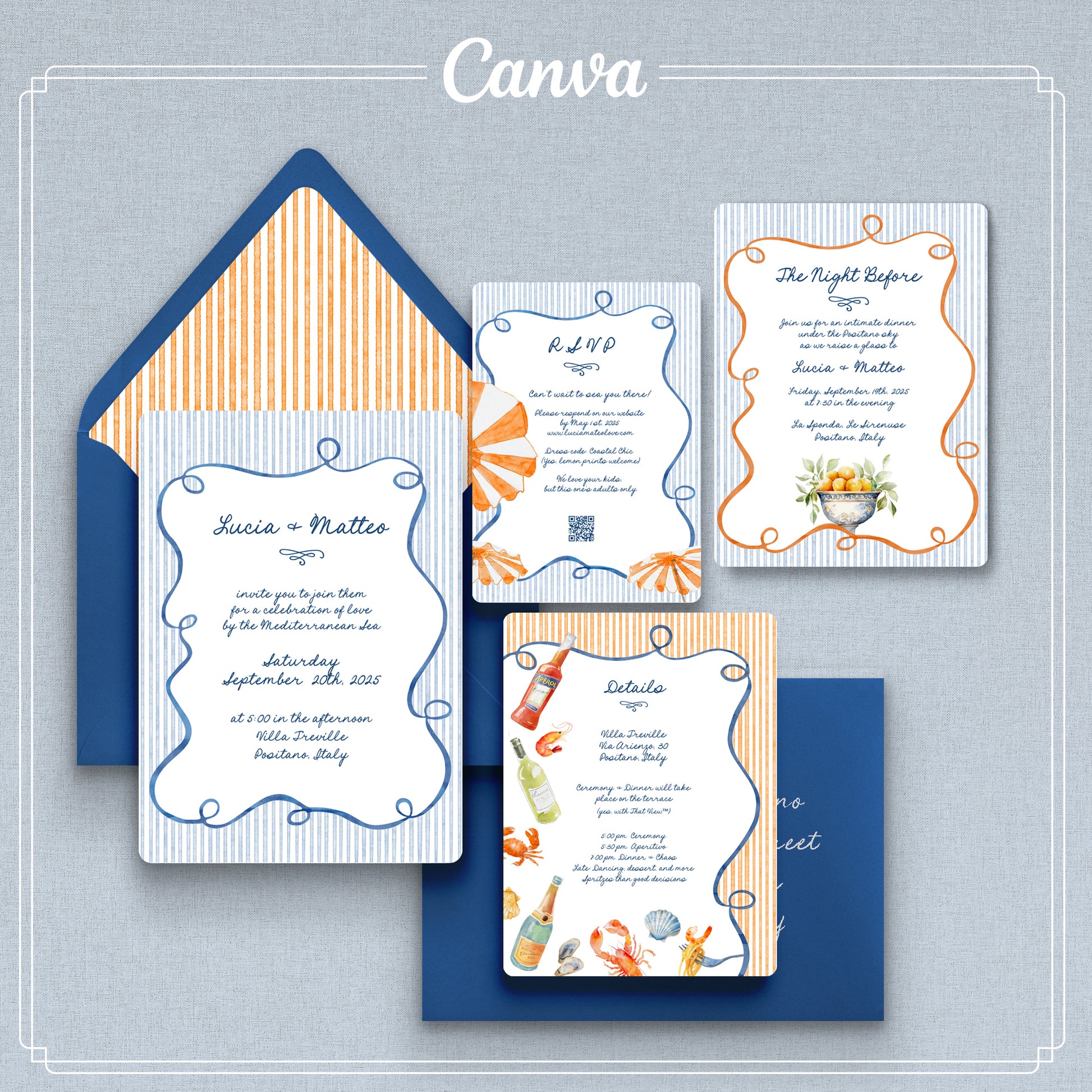 Amalfi | Suite Inviti di Nozze | Modello Canva Modificabile