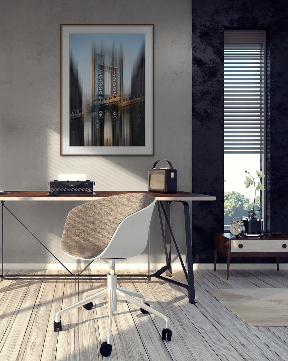 This striking photo artwork from Olia Saunders' In Between Worlds series reimagines the Manhattan Bridge in a state of dynamic motion. Blending architectural precision with artistic abstraction, it captures the relentless energy of New York City.